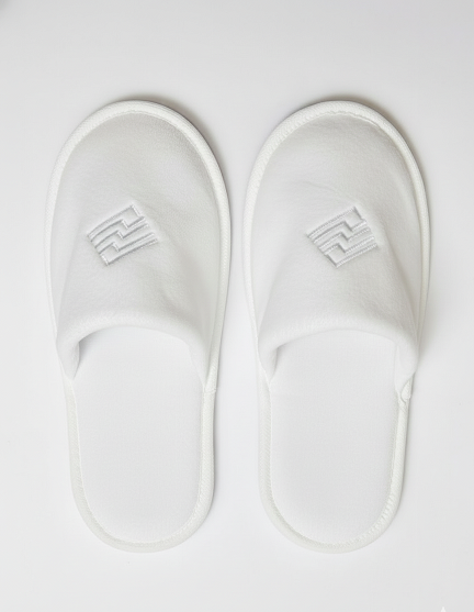 Otel logo baskılı polyester, pamuk havlu ve tela kumaştan kaymaz taban veya eva tabanlı tek kullanımlık otel terliklerinin üretim ve satışını yapmaktayız.